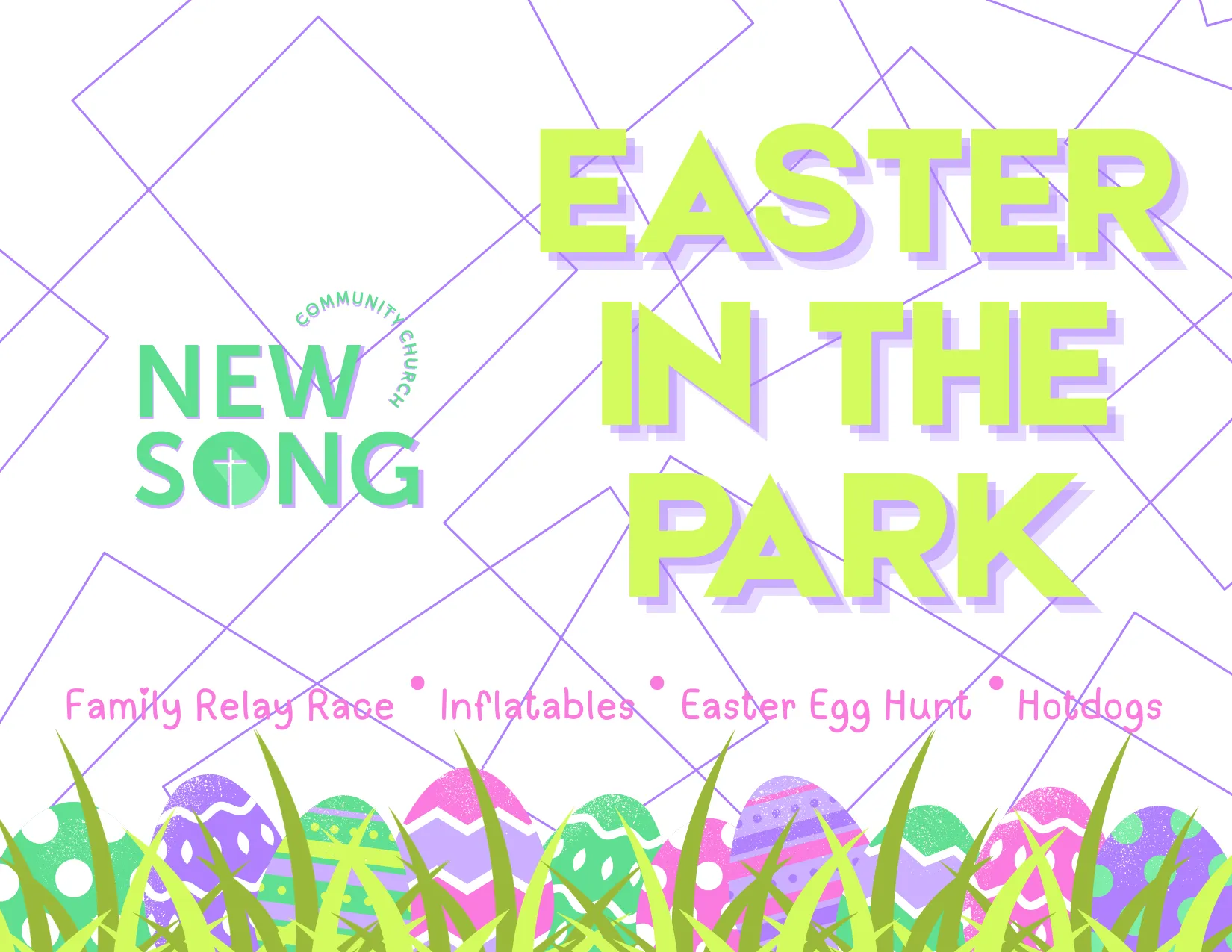 Join us for a fun-filled family celebration at New Song Community Church! Bring the whole family for an afternoon of Easter joy featuring a family relay race, bouncing inflatables, an exciting Easter egg hunt, and hotdogs. It's a wonderful opportunity to share the hope and joy of Easter with the community.